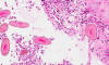 History: This slide was obtained from a nodule, 1.8 cm across, of a 34 year-old woman. The nodule is located at the cleft of the buttock a few centimeters from the anus.