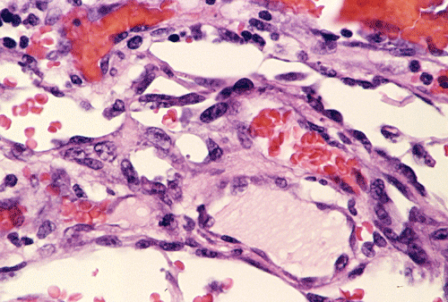 The microscopic picture of angiosarcoma of the breast is not unlike angiosarcoma found elsewhere in the body. However, it is extremely important to note that angisarcoma of the breast can have bland cytologic features. Any vascular lesion in the breast must, therefore, be handled with extreme care.