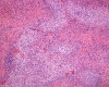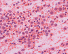 Morphologic features are often sufficient to make an accurate diagnosis. Typical lesions are composed of medium sized to large Langerhans’ cells mixed with non-neopalstic inflammatory cells. The amount of eosinophils can vary from none 3 or scant to substantial. The Langerhans’ cells have only slight degree of atypia. Many of the nuclei have a characteristic deep groove parallel to the long axis, the so-called “coffee bean” nuclei. The amount of cytoplasm is usually moderate. Histiocytes (macrophages) are usually present and can be multinucleated. When histiocytes are present in large amount, they may make the diagnosis difficult. Similar to their non-neoplastic counterparts, tumor cells in Langerhans’ cell histiocytosis are positive for CD1a and S100 by immunohistochemistry. Histiocytes, on the other hands, are negative for S100 and CD1a 4, 5, 6 CD68 is helpful but not entirely specific in separating histiocytes from tumor cells in Langerhans’ cell histiocytosis. The proliferating fraction of can be recognized by immunohistochemistry for Ki67 (MIB-1) 6.