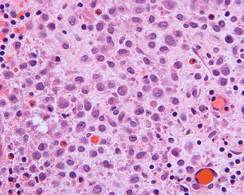 The inflammatory cell background in Hodgkin’s lymphoma is the source of confusion. Hodgkin’s lymphoma is most commonly seen in middle aged adults and most commonly presented with lymphadenopathy. Reed-Sternberg cells and lacunar cells are typical for Hodgkin’s disease. Langerhans’ cell histiocytosis usually does not attain the degree of pleomorphism of Reed-Sternberg cells. Langerhans’ cells histiocytosis can also be confused with some non-Hodgkin’s lymphomas. Immunohistochemistry is also helpful.