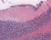 AT/RT is an uncommon tumor comprising about 2% or less of all childhood brain tumors and is less frequently seen than medulloblastoma. There is a slight male predominance and most of the tumors occur under the age of two and only rare examples has been reported in adults [Luttenbach J et al., 2001]. Similar to other malignant tumors of the central nervous system, they rarely metastasize outside the central nervous system [Guller E et al., 2001]. The posterior fossa and the cerebellar pontine angle are the most common place of occurrence with a combined incidence of 49% (38% in cerebellum, 11% in cerebellar pontine angle). AT/RT has a distinct tendency to invade into the surrounding tissue in the cerebellar pontine angle. The cerebrum harbors the other 28% of tumors and other uncommon sites including pineal, brainstem, suprasellar, and spinal cord are primary locations of the rest of the tumor (13%) [Rorke LB et al., 1996]. Disseminated tumor is seen in about one third of the cases at presentation. The prognosis is poor [Rorke LB et al., 1996; Burger PC et al., 1998; Bambakidis NC et al., 2002], with a 3-year survival of 22% from the Germany HIT trial center [Biggs et al., 1987]. High dose chemotherapy and radiation can potentially prolong the survival [Meyers SP et al., 2006; Lafay-Cousin L et al., 2012; Geyere JR et al., 2005; Chi et al., 2009]. Rare prolonged survivals have been reported [Hirth A et al., 2003; von Hoff K et al., 2011]. Molecular subgroups of AT/RTs have also been identified using global and transcriptional analysis and the data may help to stratify patients into different risk groups [Torchia J et al., 2006]. MRI findings include variably contrast enhancement, with hyperintensity on FLAIR images and diffusion restriction, the latter is indicative that the tumor is highly cellular [Howlett DC et al., 1987; Meyers SP et al., 2006].