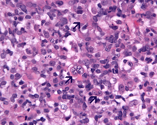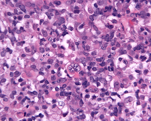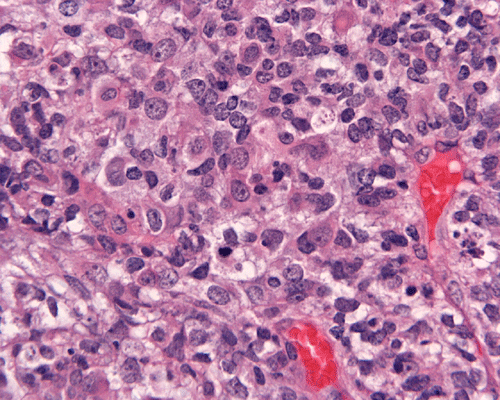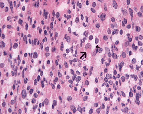 mitosis are common. The degree of necrosis is variable but may not be extensive.
