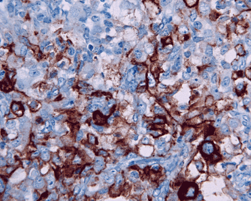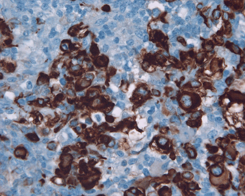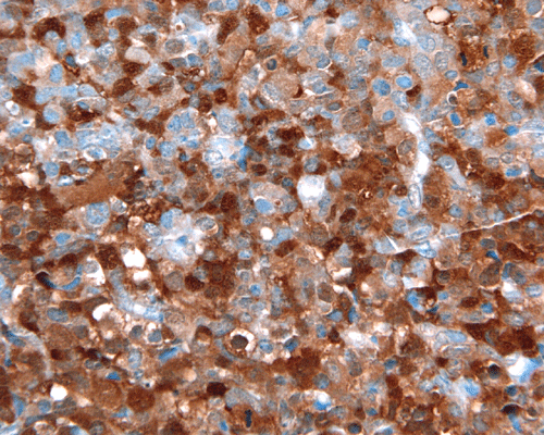 AT/RT often contains non-rhabdoid components with medulloblastoma-like components and sometime malignant and neoplastic epithelial and mesenchymal components. Rorke et al. published the first comprehensive series of 32 cases on rhabdoid tumors of the central nervous system and also used the term atypical teratoid/rhabdoid tumor (AT/RT) to describe these tumors [Rorke LB et al., 1996] as an attempt to emphasize the diverted histopathologic features in these tumors. Deletion and mutation of the SMARCB1 gene (synonyms: INI1, SMARCB1, hSNF5) in chromosome 22q11.2, and very rarely SMARCA4 which codes the BRG1 protein, are the molecular defining features of AT/RTs [Biegel et al., 2002]. A cell line has been established [Yachnis AT et al., 1998].