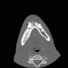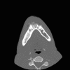 Clinical information: The patient was a 23 year-old man who went to see the dentist because of dull pain, swelling of the chin, and loosened lower front teeth. He was referred to this hospital after initial examination. A CT scan was performed and and a biopsy was taken. Representative images are presented here. Panel D is a sagittal reconstruction from axial CT scans. A resection was subsequently performed.
