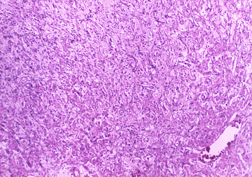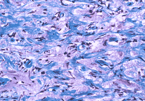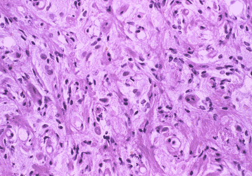 Immunohistochemistry is not very helpful in diagnosis. The proliferation is low and a low Ki67 labeling index can usually be documented. Vimentin is the most constantly expressed antigen but does not really help in arriving the diagnosis. The cells are variably immunoreactive for epithelial membrane antigen (EMA), S100 protein, Leu-7 and glial fibrillary acidic progein.
