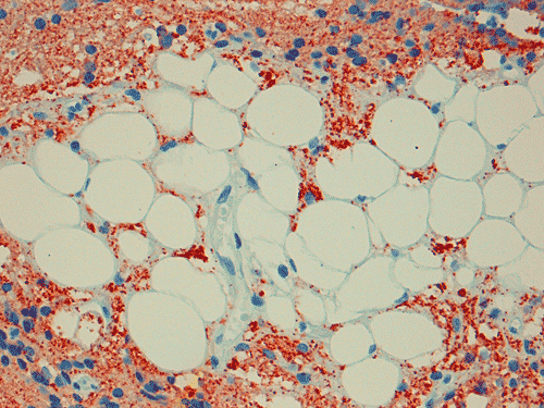 Cerebellar liponeurocytoma are extremely rare tumors. Most patients are in their 5th decade and present with features referring to a mass in the cerebellum. The salient histological feature is a combination of neuronal/neurocytic tumor with lipdized cells. This peculiar combination of neuronal/neurocytic elements with adipose tissue was first recognized by Bechtel et al. in 1978 1. Although accumulation of lipid droplets in pleomorphic xanthomatous astrocytoma is well documented and adipocytes have been described in a case of medulloblastoma with glioblastoma component 2, tumor cells that are lipidized to the extent that give morphology of mature adipose cells is rather unusual in primary neuroepithelial tumos. The interesting combination of clear cell (neurocytic) component and adipocyte-like cells has generate a long list of different names for this entity such as lipomatous glioneurocytoma of the posterior fossa and lipomatous medulloblastoma 1, 3, 4, 5, 6, 7, 8, 9, 10, 11, 12. The name cerebellar liponeurocytoma as adopted by The World Health Organization (WHO) is perhaps the best name for this type of tumor. Cerebellar liponeurocytoma is a WHO grade I tumor and is biologically benign. Late recurrence has be described in rare cases 13. Interestingly, lipomatous differentiation has also been described in rare cases of suprtentoral central neurocytoma 14, 15. Demonstration of myoid differentiation in a case of cerebellar liponeurocytoma 9 further suggests that mesenchymal differentiation of neurocytomas might not be limited adipocyte-like changes. In addition rhabdomyomatous differentiation 16 and features of photoreceptor cells have been demonstrated in supratentorial neurocytoma 14. These observations raise the question whether cerebellar liponeurocytoma is a distinct entity or a variant within the neurocytoma family that displays mesenchymal differentiation.