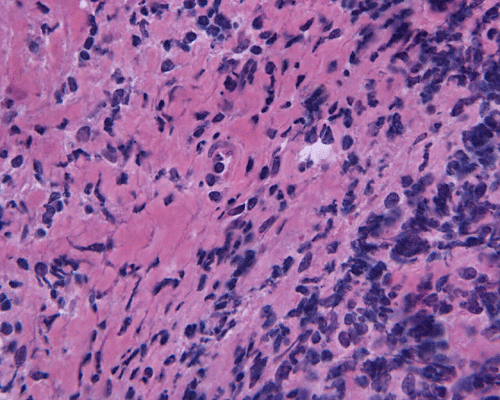 First, the inflammatory cell infiltration and particularly the macrophages and granulomatous reaction can suggest an inflammatory process such as sarcoidosis or infection. A high index of suspicion, familiar with the clinical, imaging, and pathologic characteristics are essential to making a correct diagnosis.