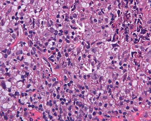 Kraichoke S, Cosgrove M, Chandrasoma PT. Granulomatous inflammation in pineal germinoma. A cause of diagnostic failure at stereotaxic brain biopsy. American Journal of Surgical Pathology. 1988; 12:655-60.