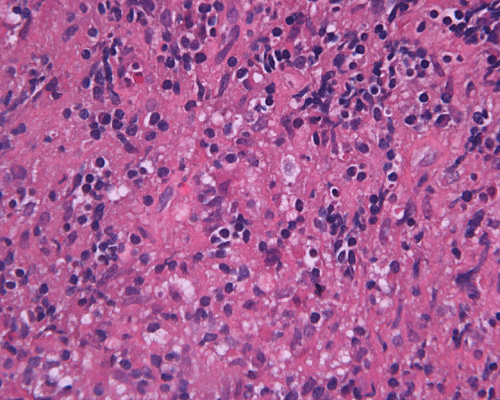Granulomatous changes are common findings in germinomas and intracranial germinomas follow this general trend 3, 4, 5. It can be extensive. This feature is particularly problematic in neuropathologic when stereotactic biopsy is performed and the amount of tissue available for examination is limited as illustrated in this case. During intraoperative consultations, a frozen section diagnosis of granulomatous inflammation should prompt additional sampling as isolated granulomatous inflammation of infectious origin and sarcodosis are quite uncommon in the pineal gland.