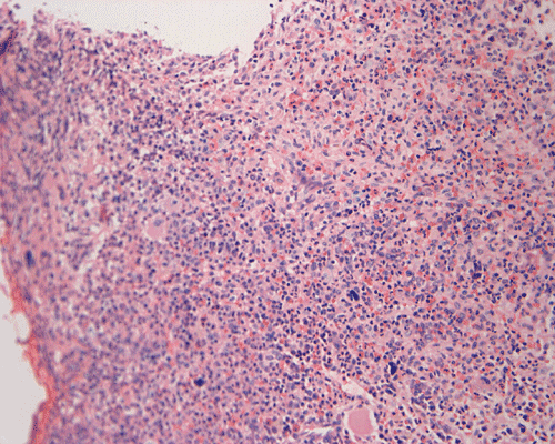 The patient in the presented case was diagnosed with aggressive systemic mastocytosis, with documented bone marrow, liver and spleen involvement, and succumbed to his disease about two months after the presented biopsy.