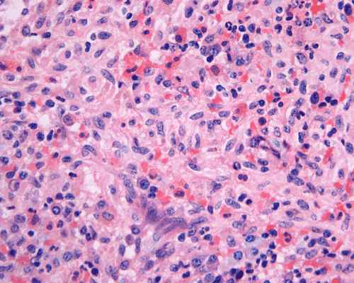 Normal mast cells have a round or oval, centrally located nucleus with uniform distribution of dark purple granules in the cytoplasm. Mast cells are well demonstrated by toludine blue and Giemsa stains, and also by immunohistochemistry for CD 117 or tryptase. Napthol ASD chloracetate esterase also highlight mast cells specifically. Mast cells are also positive for CD45, CD33, and CD68 but these markers are less specific than tryptase. Bone marrow aspirations stained with Giemsa are most useful for recognizing atypia in mast cells. It should, however, note that Giemsa stain may be false negative in formalin fided tissue. Hallmarks of atypia in mast cells include spindling of mast cells, hypogranulation, uneven granule distribution, and nuclear lobulation. Recognition of the so-called mast cell granuloma, in which mast cell aggregrates are associated with lymphocytes and eosinophils can be helpful.