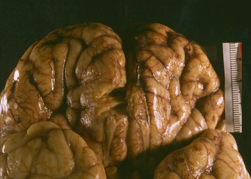 An autopsy limited to the brain was performed. The followings are representative photographs of the brain: