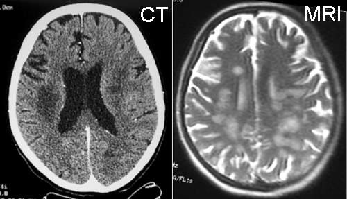 Difficulties in Walking, Confusion, Multiple White Matter Lesions. January, 2006, Case 601-1. Home Page |