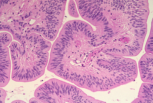 Papillary ependymoma, as illustrated in this case, is a rare variant. These tumors typically appear as papillary fronds covered by multilayered ependymal tumor cells. The most superficial layer may have epithelium-like surfaces similar to those of ependymal rosettes. These tumors must be distinguished from metastatic papillary carcinomas and choroids plexus tumors. One salient feature is that papillary ependymomas have no basement membrane. The superficial epithelial tumor cells merge imperceptibly with the underneath tumor cells. Papillary ependymoma can express cytokeratin. It is not rare to see focal papillary formation in an otherwise classic ependymoma. However, tumors composed predominantly of papillary structure as illustrated in this case is uncommon.