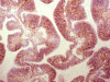 On immunohistochemistry, ependymomas usually demonstrate widespread positivity for glial fibrillary acidic protein (GFAP). The tumor cells, particularly the luminal surface of ependymal canals or papillary ependymoma are positive for epithelial membrane antigen. Over 80% of ependymomas are positive for CD99 4, 5. However, a small number of other neuroepithelial tumors are also positivie for CD99, this feature is not a full proof diagnostic help. For low-grade ependymomas the progression free survival time is significantly shorter with Ki-S1 labeling index over 5%, and for tenascin, VEGF, and EGFR positivity on immunohistochemistry. For high-grade ependymomas PFS was found to be significantly reduced for age under 16 years, subtotal tumor removal, p27 labeling index under 20%, p53 positivity, and for apoptotic index under 1% 6. Decreased expression of p14ARF protein expression is also related to aggressive biological behavior 7.