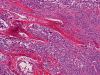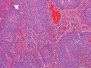 The pathology of malignant melanoma is similar to melanoma arising in other parts of the body. Typically, the tumor is composed of solid sheets of moderately sized to large cells with large nuclei and prominent, eosinophilic nucleoli. Pseudonuclear inclusions are common. The amount of cytoplasm can range from small to moderate and often have a bluish-grayish amphophilic hue. The amount of melanin pigments in cells is extremely variable. It can range from easily found to total absence. The tumor may show solid, papillary, alveolar or sarcomatoid pattern of growth. The tumor cells can be epithelioid, spindled, plasmacytoid, rhabdoid, and/or multinucleated cells. As per one study, SUMM are more likely to have pseudopapillary pattern in comparison to melanoma arising in the oral cavity 3. The cytoplasm may or may not contain melanin pigment. Mitoses are frequent and necrosis is common.