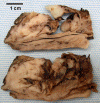 MRI demonstrated a 3.4 cm mass in the right maxillary sinus with heterogeneous enhancement. The mass extend from the inferior anterior to superior anterior aspect of the maxillary sinus with abnormal signal in the anterior wall suggestive of bone invasion. The floor of the orbit was also extensively invaded but no tumor invasion of the orbital content is noted. The cribiform plate does not appear to be involved by tumor. Based on the imaging studies and the biopsy result, a right maxillectomy with orbital exenteration was performed. The following are representative images: