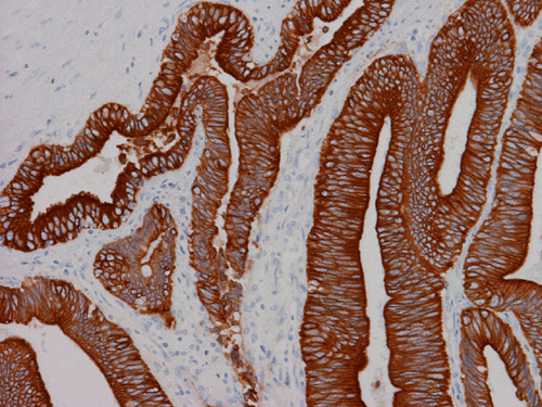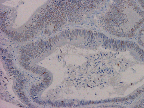 Originally considered to be a disease of low malignant potential, extensive studies have suggested otherwise. A study carried out by Lee et al. 4 on 58 cases of BP revealed that 48 of the 58 patients (83%) had an associated papillary carcinoma. An additional study by Yeung et al. 8 reported a high rate of malignant occurrence of approximately 41%. Histological analysis along with the expression pattern of mucin core proteins (MUC) and mucin carbohydrate antigens suggest that BP is a histologically borderline or low grade malignant neoplasm with high malignant potential 3. Additionally, BP often has the presence of carcinogenic indicators, the K-ras mutation and over expression of p53 3.