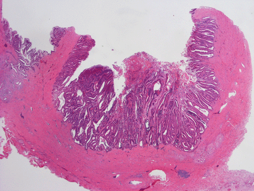 | DIAGNOSIS: Papillomatosis of the gallbladder with focal high-grade dysplasia. |
