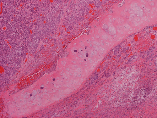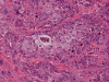 Clinical information: The patient was a 60 year-old man who came to our clinic with the complain of a nodule a the tip of the nose. On physical examination, a 1.2 cm firm nodule was found at the tip of the nose. The nodule is firmly fixed to the underlying tissue and is covered by intact skin. The nodule was excised and yielded the following representative images.