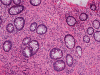 Clinical information: The patient was a 54 year-old man. On screening colonoscopy, a small nodular polyp was found. The following are representative images from this polyp.