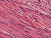 As reflected by their name, SFTs are fibrous and contain large collagenized areas and vessels with thick and/or hyalinized walls. In the classic cases, the collagenous fibrous component is strikingly hyalinized.The cells usually have low grade, elongated, cigar shaped nuclei and they often insinuate among collagen fibers. For those arising in the pleura, they are often covered by mesothelial cells. Entrapped alveolar or bronchial epithelial component at their serosal margin may be suggestive of an epithelial component of these tumors.
