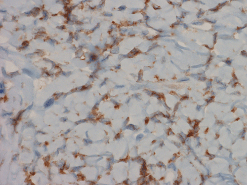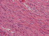 Some tumors may be more cellular and less fibrous. SFTs have often been referred as having a ‘patternless’ growth pattern. In fact, two partially overlapping patterns are recognizable in most of the SFTs. The more common form, so called fibrous SFT, is characterized by alternating hypercellular and hypocellular fibrous areas. The cells in hypercellular areas are predominantly of round-to-spindle cells with a fascicular, storiform or fibrosarcoma-like arrangement. One of the most consistent features of the fibrous form of SFT is the presence of numerous, medium-sized, branching vessels with characteristically thickened and hyalinized walls. The second form, a cellular form, of SFT resembles what had been called hemangiopericytoma prior to 1990 7. As opposed to the more common fibrous form, cellular SFTs usually have a monotonous appearance, even, moderate to high cellularity, little intervening fibrosis, numerous thin-walled ‘staghorn’ branching vessels, and round-to-oval monomorphic tumor cell nuclei. They are usually large and tend to be found in the deep soft tissues of the thigh, pelvis retroperitoneum, limb girdles, head and neck, as well as in the meninges. Myxoid change, areas of fibrosis and interstitial mast cells are commonly observed in SFTs. Mitoses are generally scarce, rarely exceeding 3 mitoses per 10 high-power fields. Some SFTs may contain mature adipocytes and/or giant multinucleated stromal cells, overlapping morphologically with the so-called lipomatous haemangiopericytoma and giant cell angiofibroma.