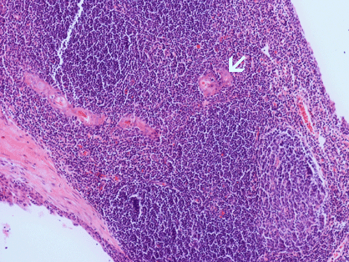 Preoperatively, they are often mistaken as other processes such as lymphangiomas or branchial cleft cysts. The diagnosis relies on identification of Hassall’s corpuscles within a lymphoid background. Fine needle aspiration often yields a population of benign lymphocytes but not Hassall’s corpuscles. A correct preoperative diagnosis is not often achieved. In some cases the development of a mass may be noticed rather abruptly and, not uncommonly, resulting secondary to infection or hemorrhage in the cyst.
