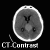 Imaging of the Case: MRI demonstrated a 4.4 x 3.5 x 4.7 cm mass in the pineal region. The lesion is isointense on T1 with homogeneous post contrast enhancement (Panel A) and slightly hyperintense on T2. The tumor is relatively well demarcated. The tectal plate is not visualized and mass effect is demonstrated upon the third ventricle outflow tract and midbrain. A second but smaller lesion of similar imaging characteristic is dmonstrated in the suprasellar region involving the optic chiasma. There is also mild hydrocephalus. CT scan (Panel B) demonstrated also a similar enhancing lesion. Calcifications are demonstrated on both MRI and CT scan.