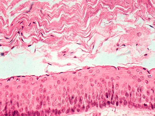 and glandular, and salivary gland like cells. Thin, non-keratinizing lining