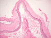 tumor. The epithelial lining however, lacks the palisading basal layer and